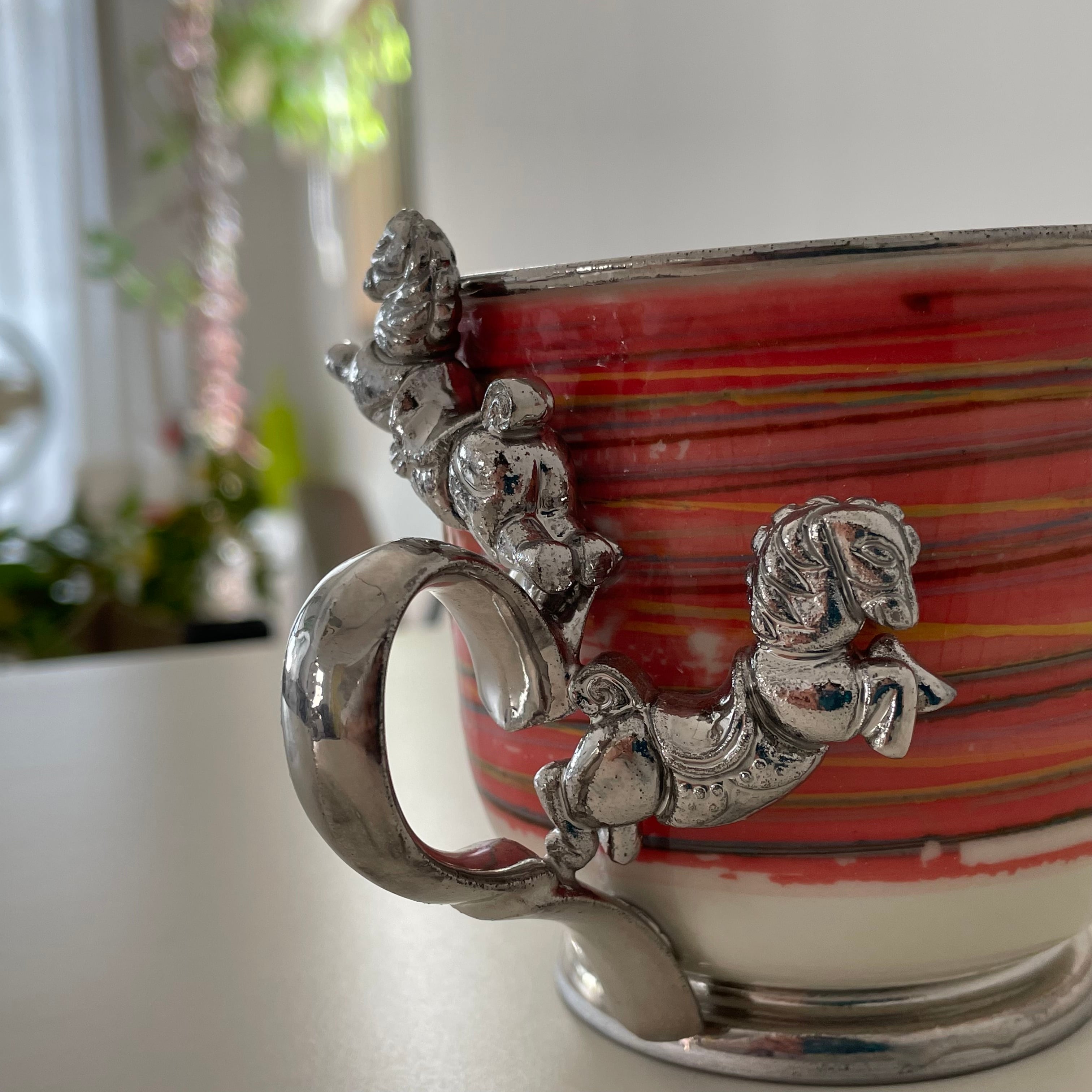 こちらはマグカップです。シルバーのパーツまで、全て焼きものです。