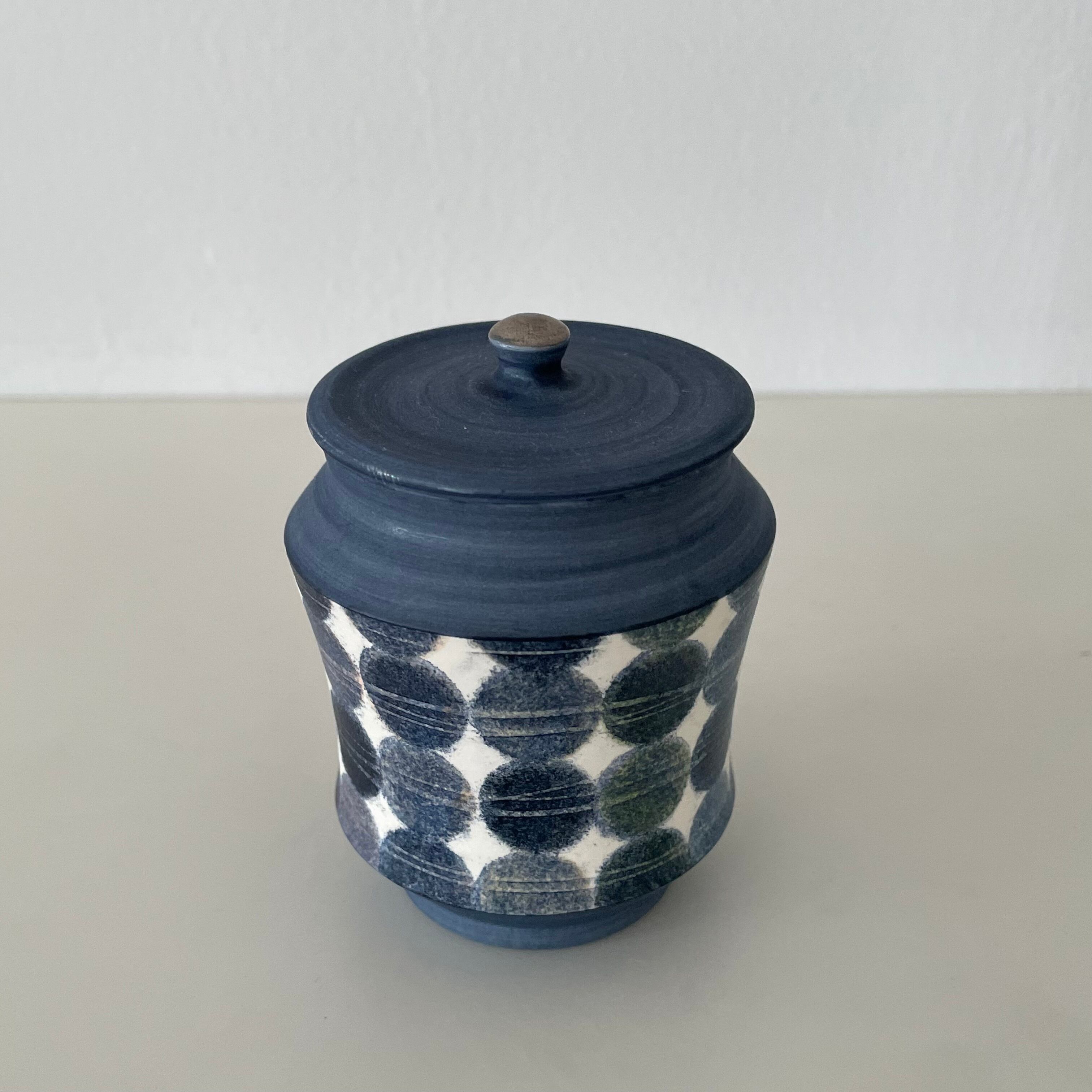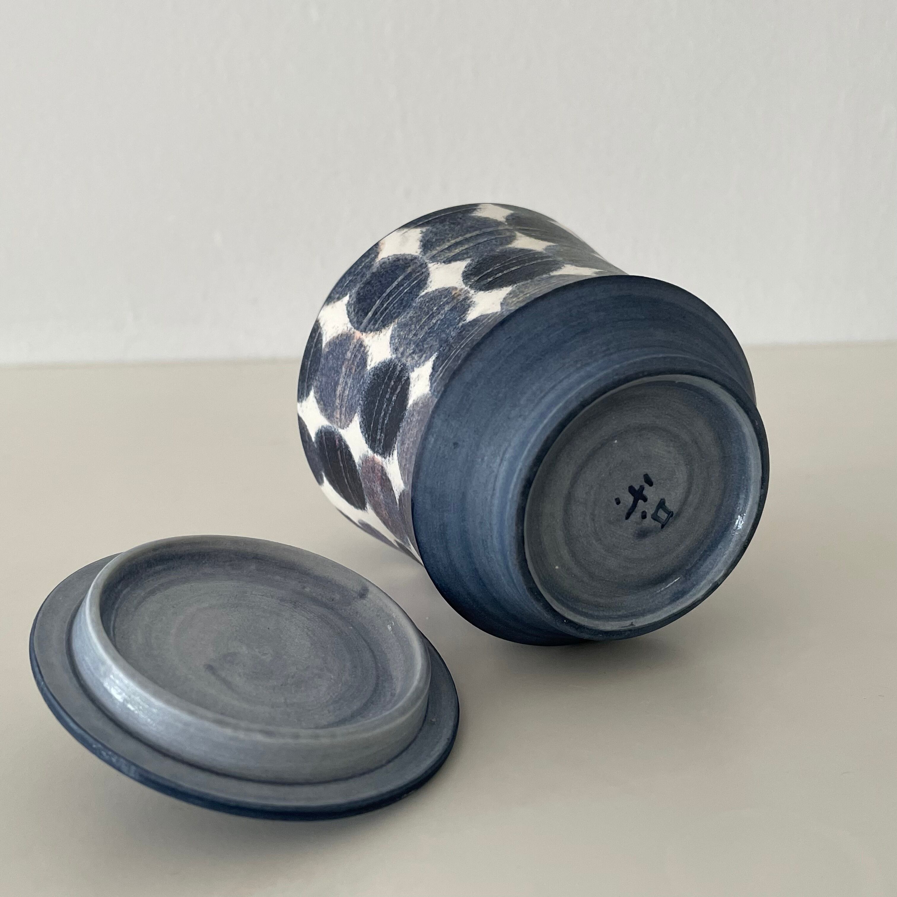 この可愛らしいふたものは、若林さんの色の美しいグラデーションを繊細に楽しむことができる作品です。中には、お抹茶を入れても良いですし、金平糖やお砂糖入れとしても使えます。